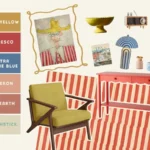 A peak at our inspiration board used when renovating the kitchen. It started with a color and a wallpaper and grew from there.