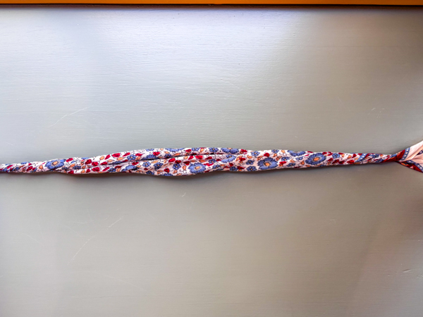 Take your neat strip and twist it gently in your hands a few times. Don’t go crazy, but twisting it just enough ensures the fabric lays more organically and gives it that beautiful, textured, undone look.