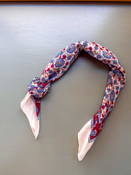 Tying a bandana can be surprisingly tricky if you want it to look casually stylish instead of costume-y. It took a while, but I found a simple way to fold and tie it that achieves that perfectly undone knot. I’ve detailed the whole process for you— from the initial fold to the final tug— in this post!