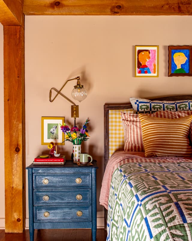 I’m so excited to share the details of our main bedroom! It’s full of cozy layers, playful pops of color, and little whimsical touches.