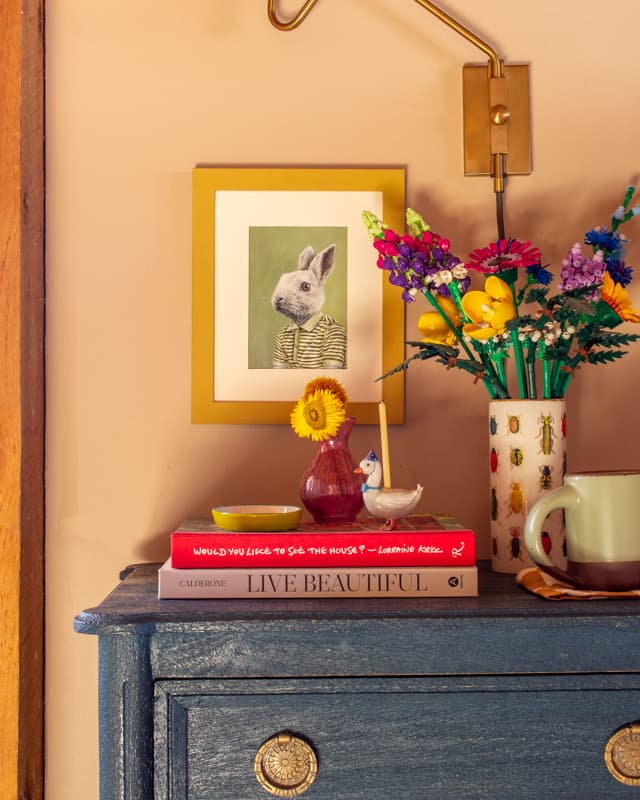 Lego flowers: these were a gift from my son! It was a perfect gift because I love decorating with toys and Legos. It gives the house a lived-in, kid-friendly feel.